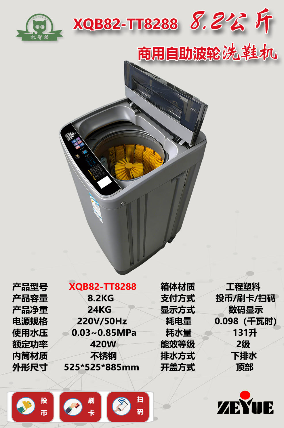 機智貓XQB82-T8288校園自助波輪洗衣機