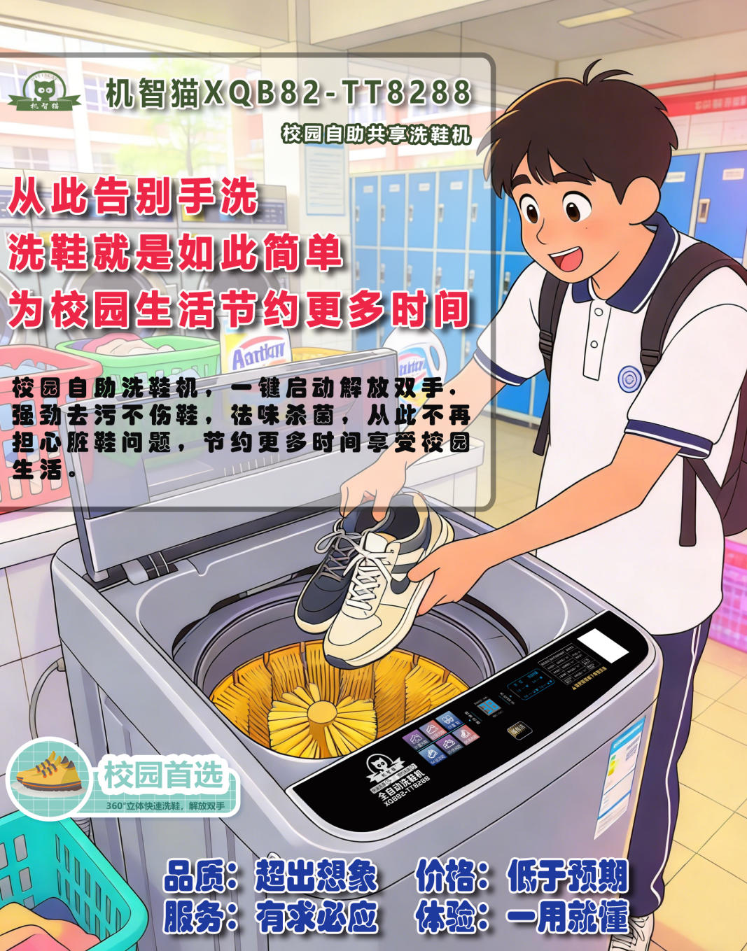 機智貓XQB82-TT8288校園自助波輪洗鞋機